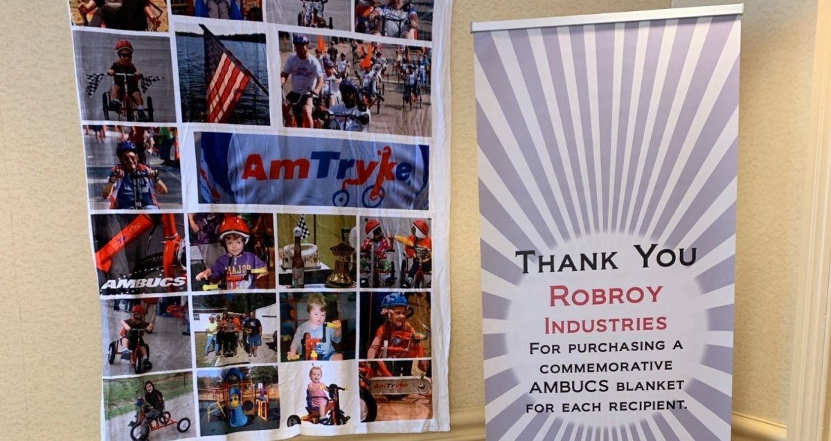 Robroy Industries recently donated $4,800 to AMBUCS; the donation went towards the purchase of 40 commemorative blankets, given to children, adults and veterans that received an Amtryke at the AMBUCS National Conference, held in Pittsburgh, PA on October 2nd– 5th.