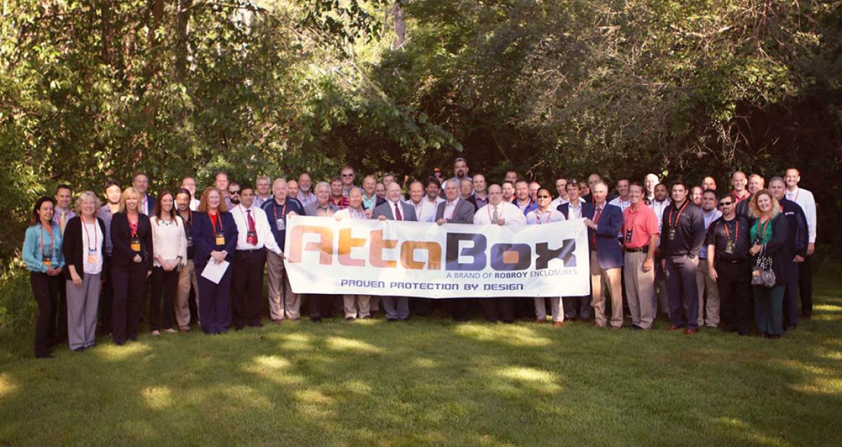 More than 40 AttaBox® Industrial Enclosures sales representatives and 20 special guests from across the nation gathered in West Michigan for the 2017 National Sales Meeting. At this meeting the baton from the original owner and founder of Attabox®, Bill Evatt, was officially transferred to Robroy Enclosures™. Robroy Enclosures™ acquired the assets of AttaBox Enclosures in June of 2016.