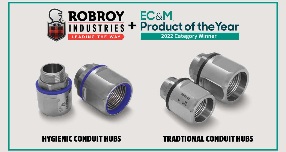 Gilmer, Texas – Robroy Stainless®, a division of Robroy Industries®, has won the 2022 “EC&M Magazine Product Of The Year” Award in the Fittings (Conduit and Cable) category in recognition of Robroy Stainless® stainless steel conduit hubs.