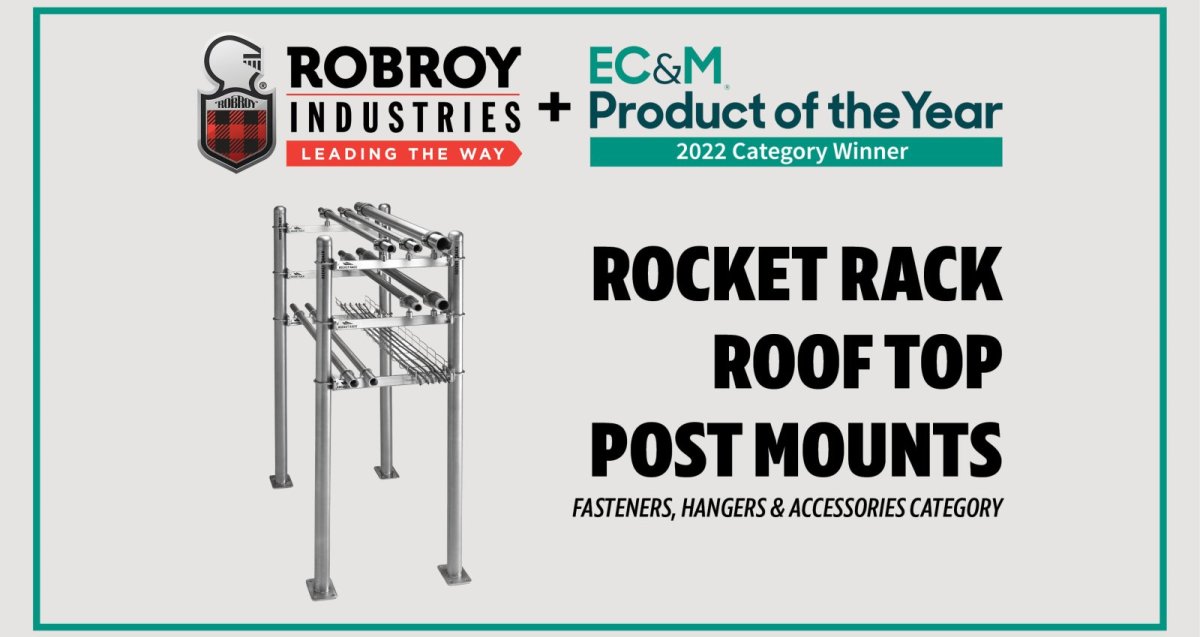 Gilmer, TX- Rocket Rack®, a division of Robroy Industries®, has won the 2022 “EC&M Magazine Product of the Year” Award in the Fasteners, Hangers & Accessories category. This prestigious honor was given in recognition for the company’s Rocket Rack® Roof Top Post Mounts.